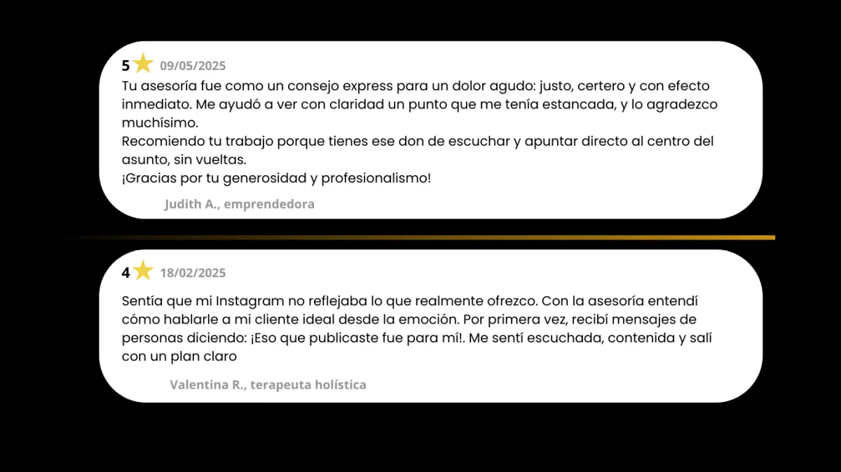 Es una experiencia estratégica 1 a 1 donde analizamos tu negocio, identificamos tus puntos ciegos y diseñamos un plan de comunicación que convierte.