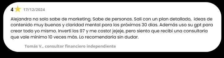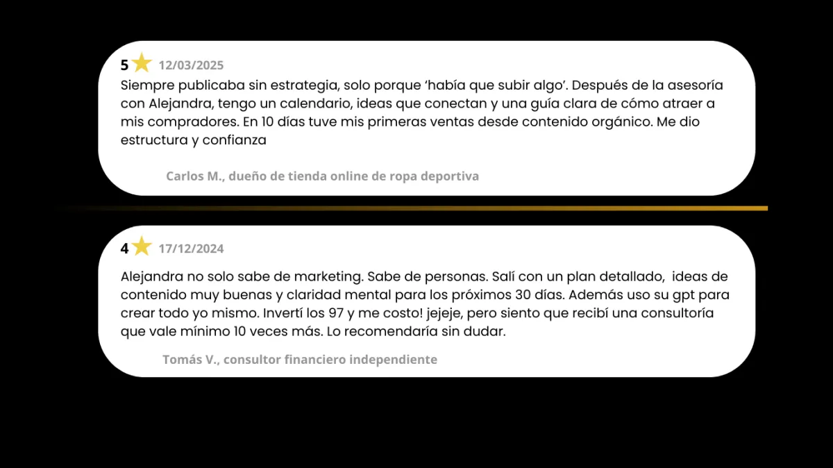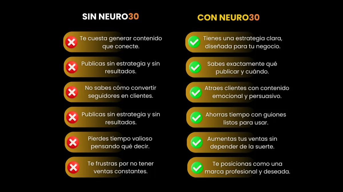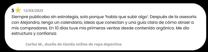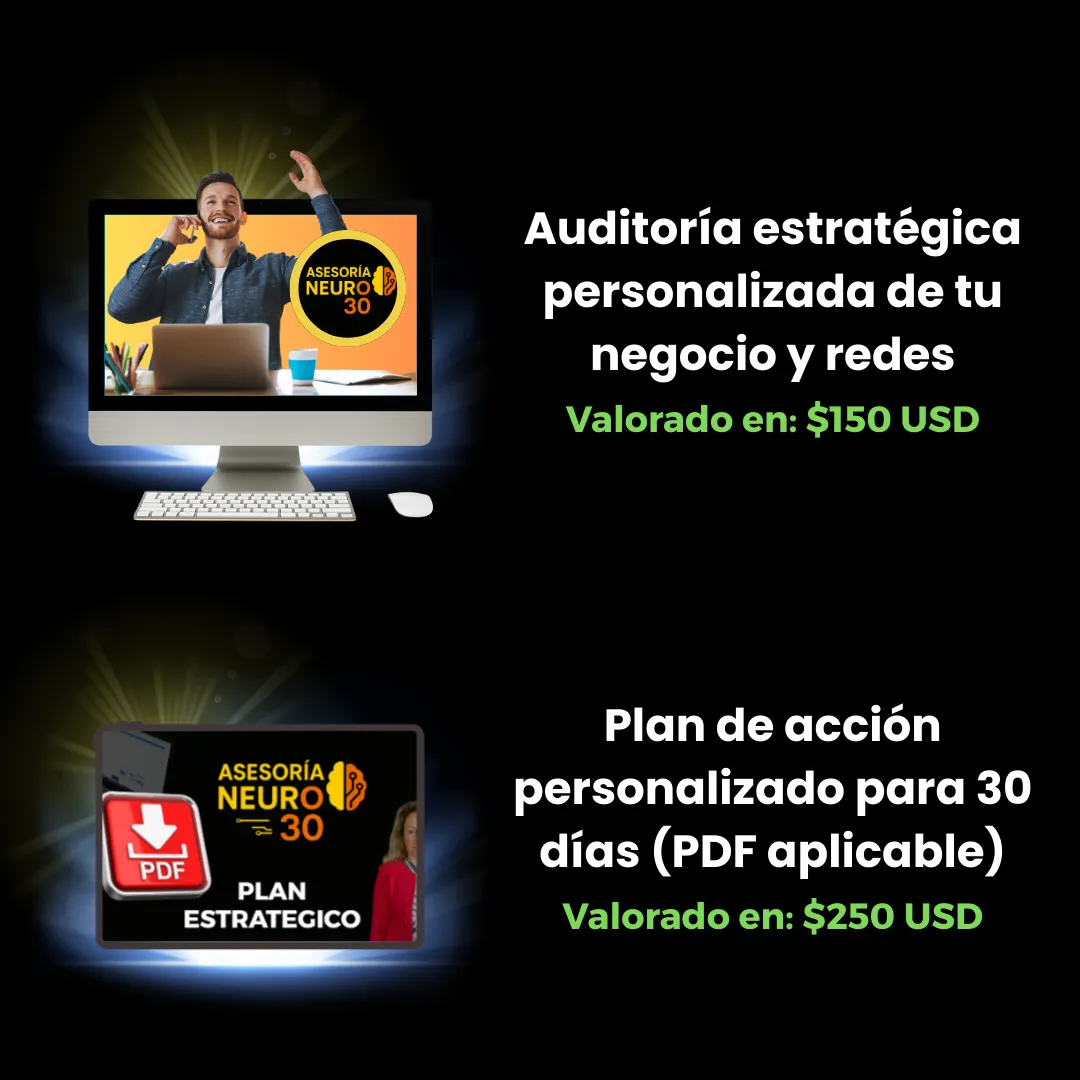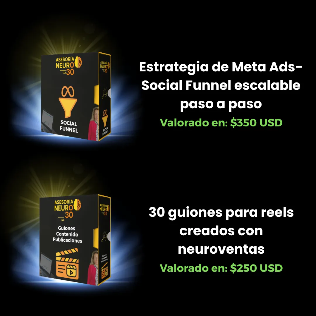 Con mi asesoría personalizada, en máximo 38 horas tendrás una estrategia clara, un calendario con ideas ganadoras y contenido diseñado con neuroventas para atraer clientes listos para comprar